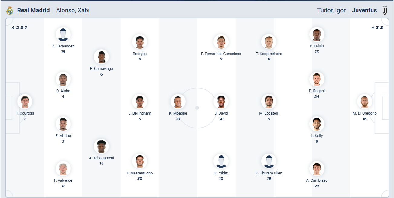 Real Madrid vẫn đang chơi tốt tại La Liga dưới thời HLV Xabi Alonso, họ đang đứng đầu bảng và cũng toàn thắng cả 2 trận đã đấu tại Champions League. Mùa trước Real Madrid chơi không tốt tại League Phase và phải đá 2 trận play off nên mùa bóng này họ muốn làm tốt hơn thế, chính vì vậy đội bóng hoàng gia Tây Ban Nha muốn tiếp tục giành chiến thắng ở các trận đấu sắp tới của mình, trước mắt là khi đón tiếp Juventus trên sân nhà. Tuy nhiên đối thủ đến từ Italia không dễ bị đánh bại, rất có thể Real Madrid sẽ chỉ có được trận hòa.
